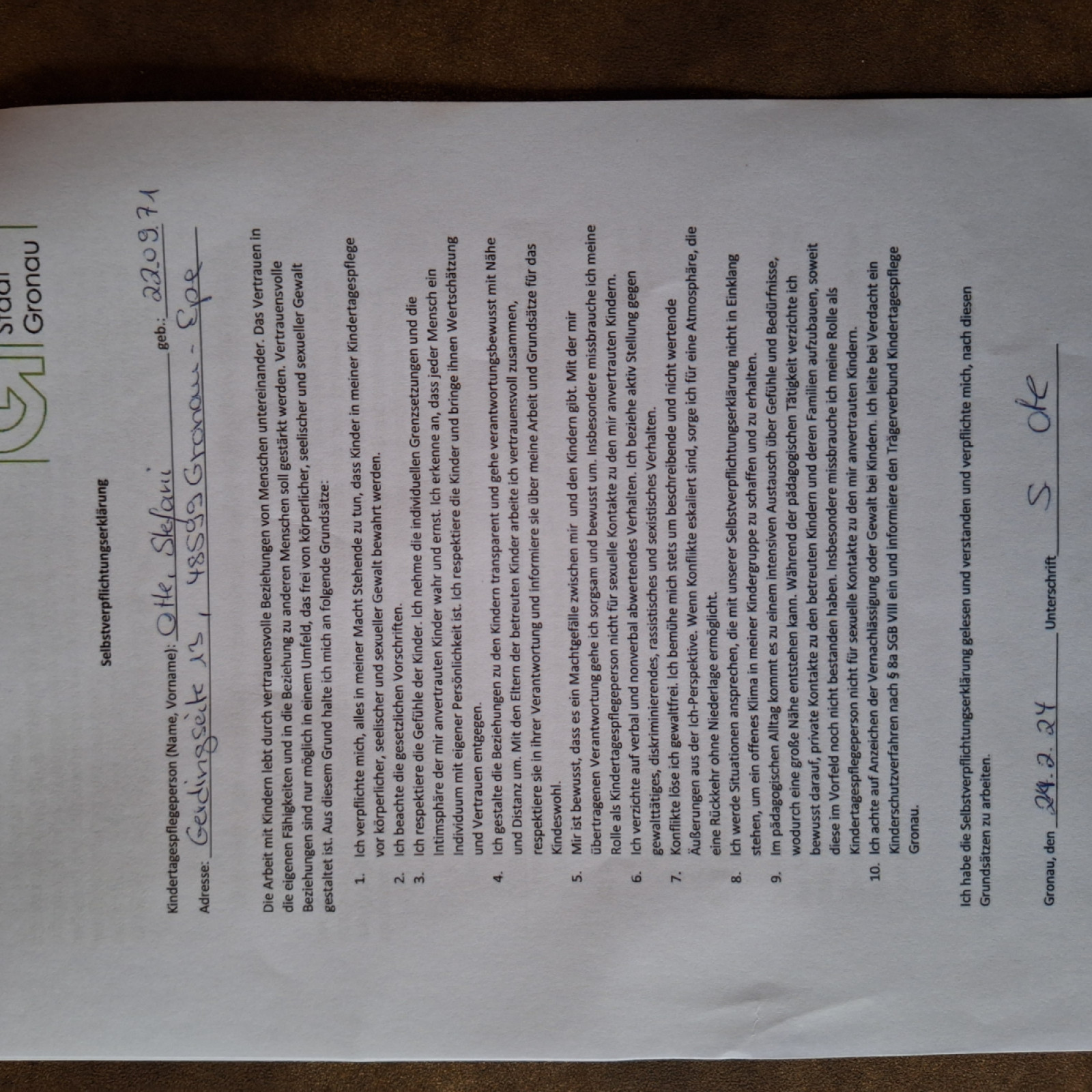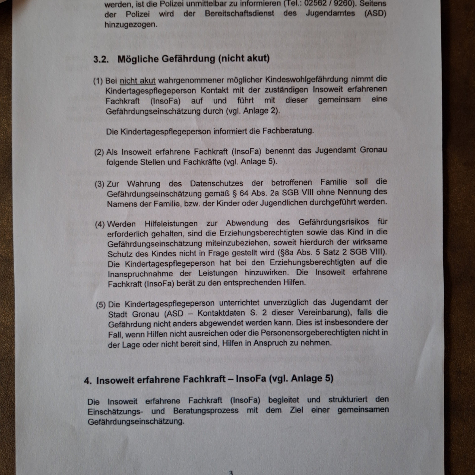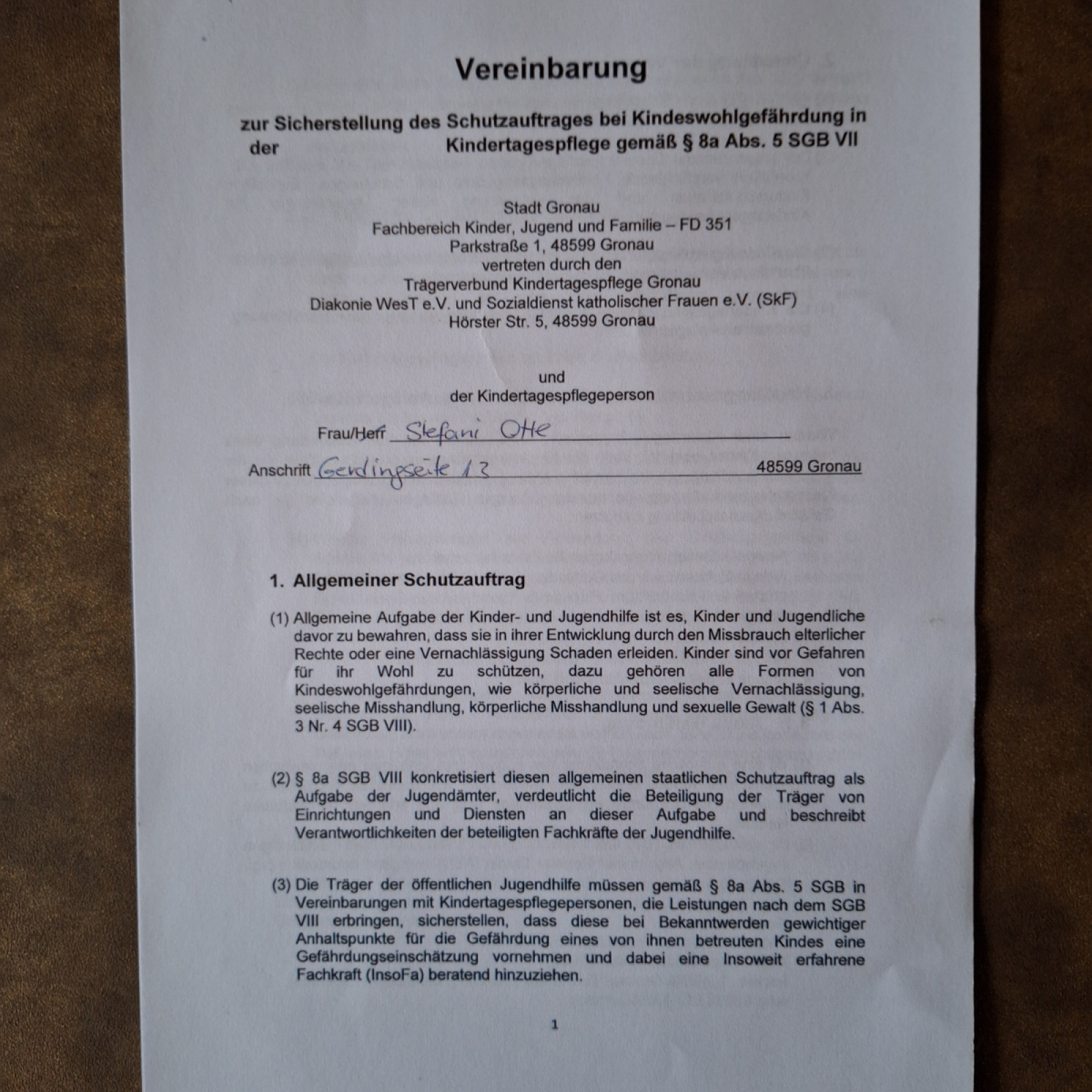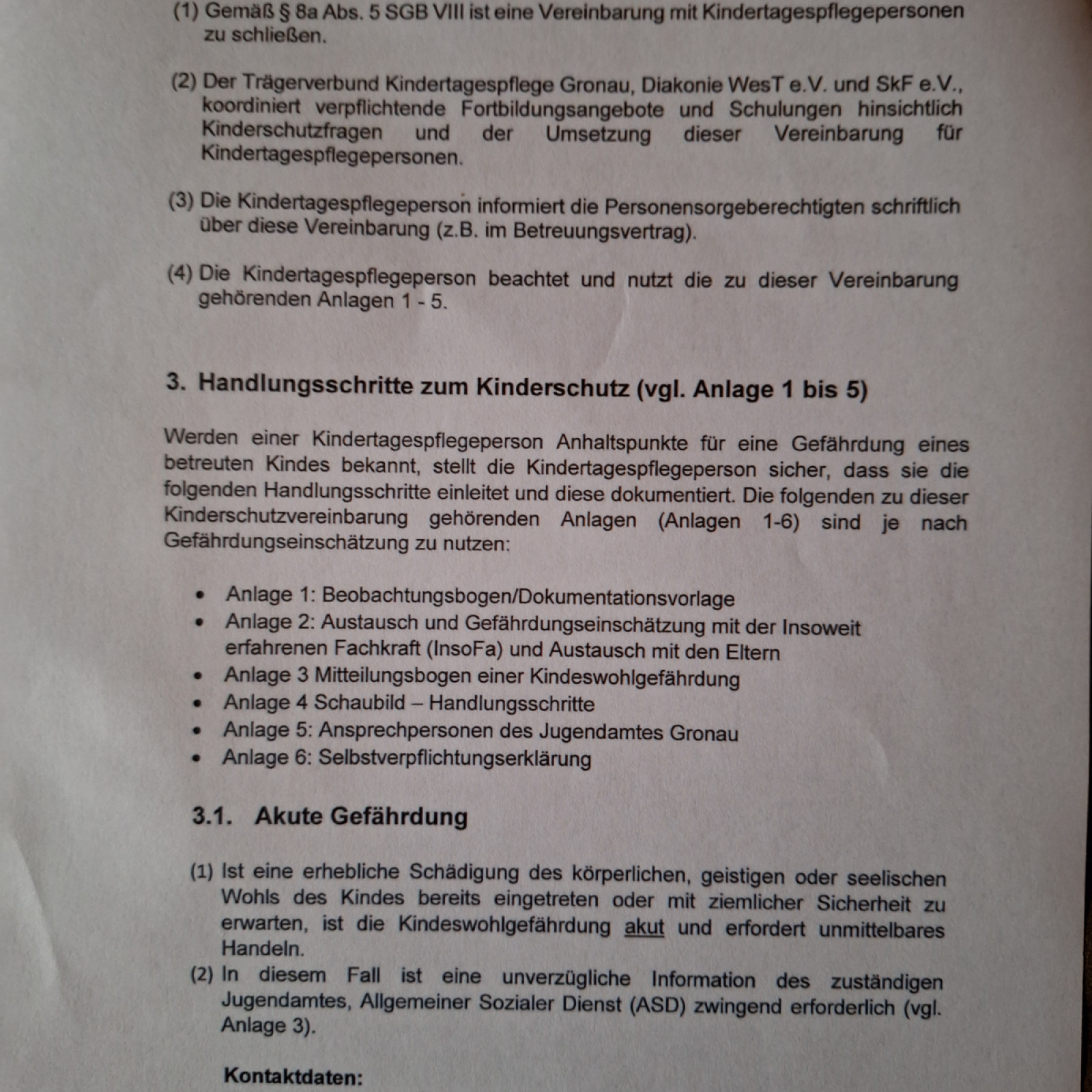 - Belehrung „ Vereinbarung Schutzauftrag bei Kindeswohlgefährdung in der Kindertagespflege gemäß § 8a Abs. 5 SGB VII