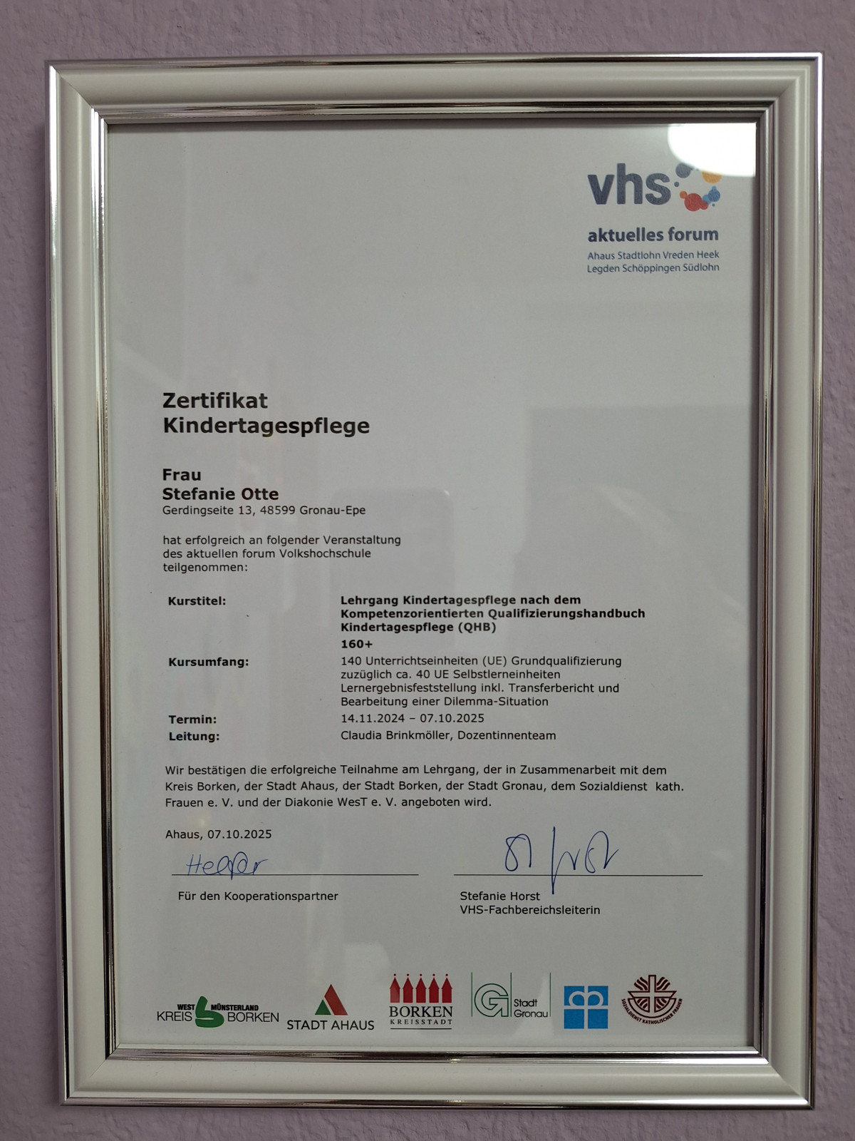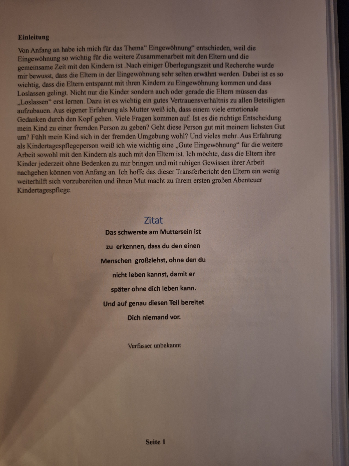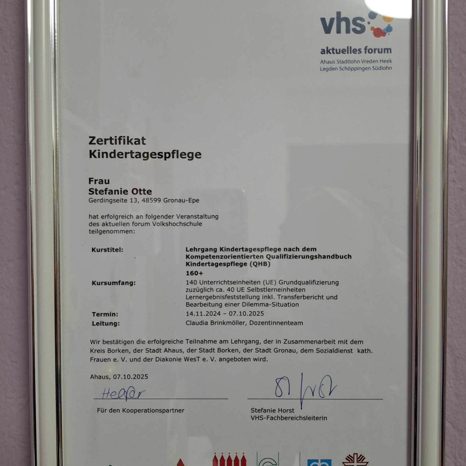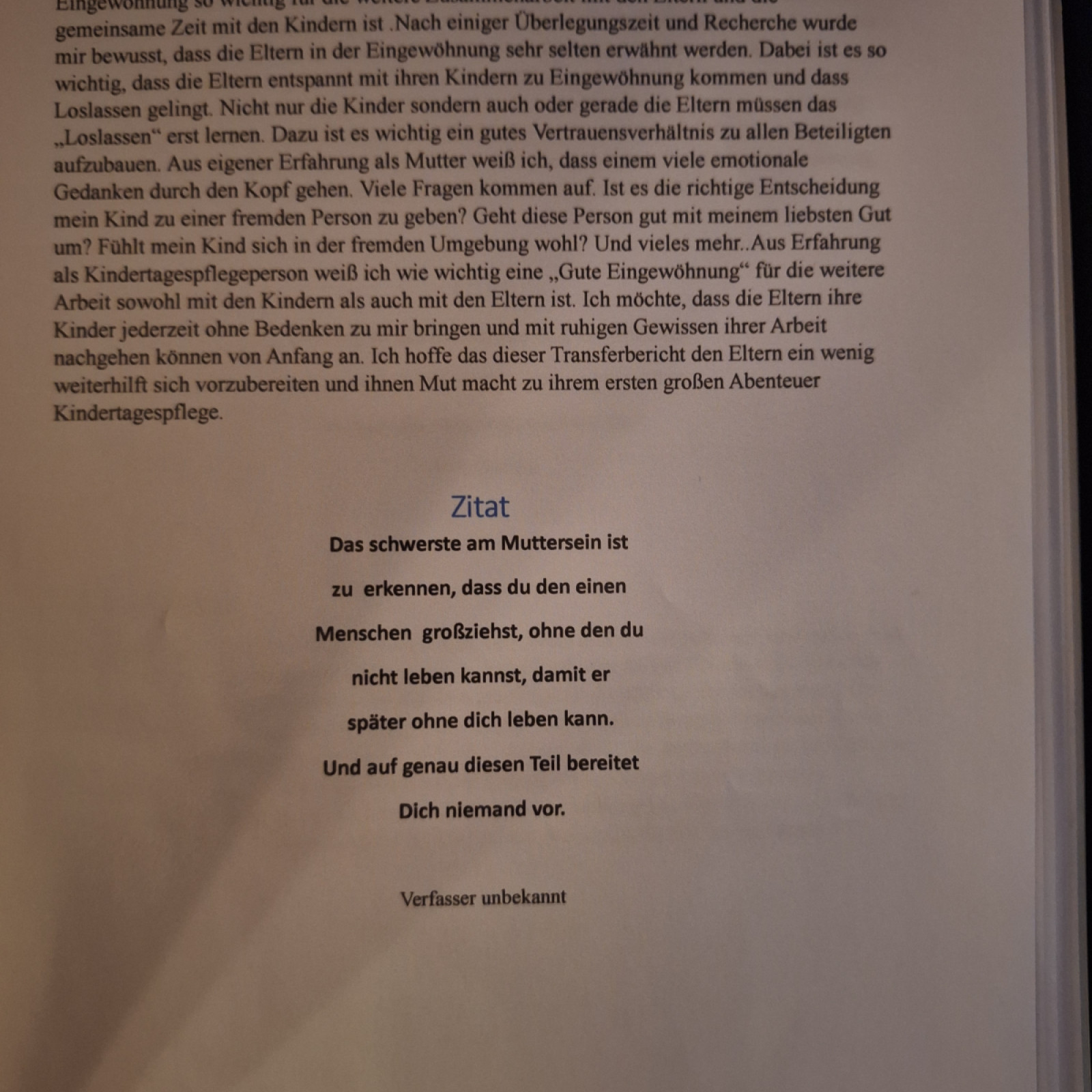 von November '24 bis Oktober '25 die Fortbildung QHB 160+ Kindertagespflege erfolgreich absolviert. Dafür musste ein Transferbericht geschrieben werden den ich hier veröffentlichen möchte.