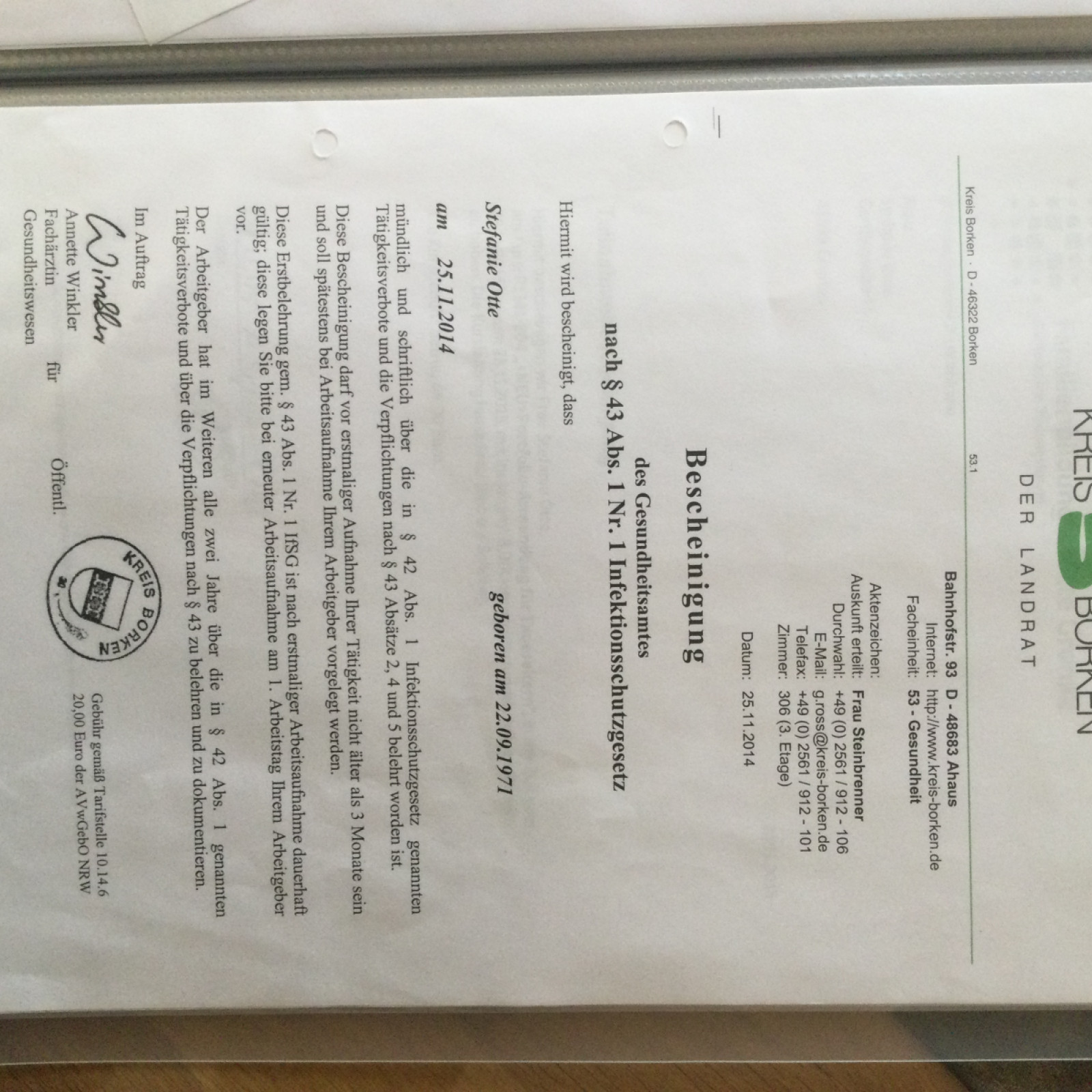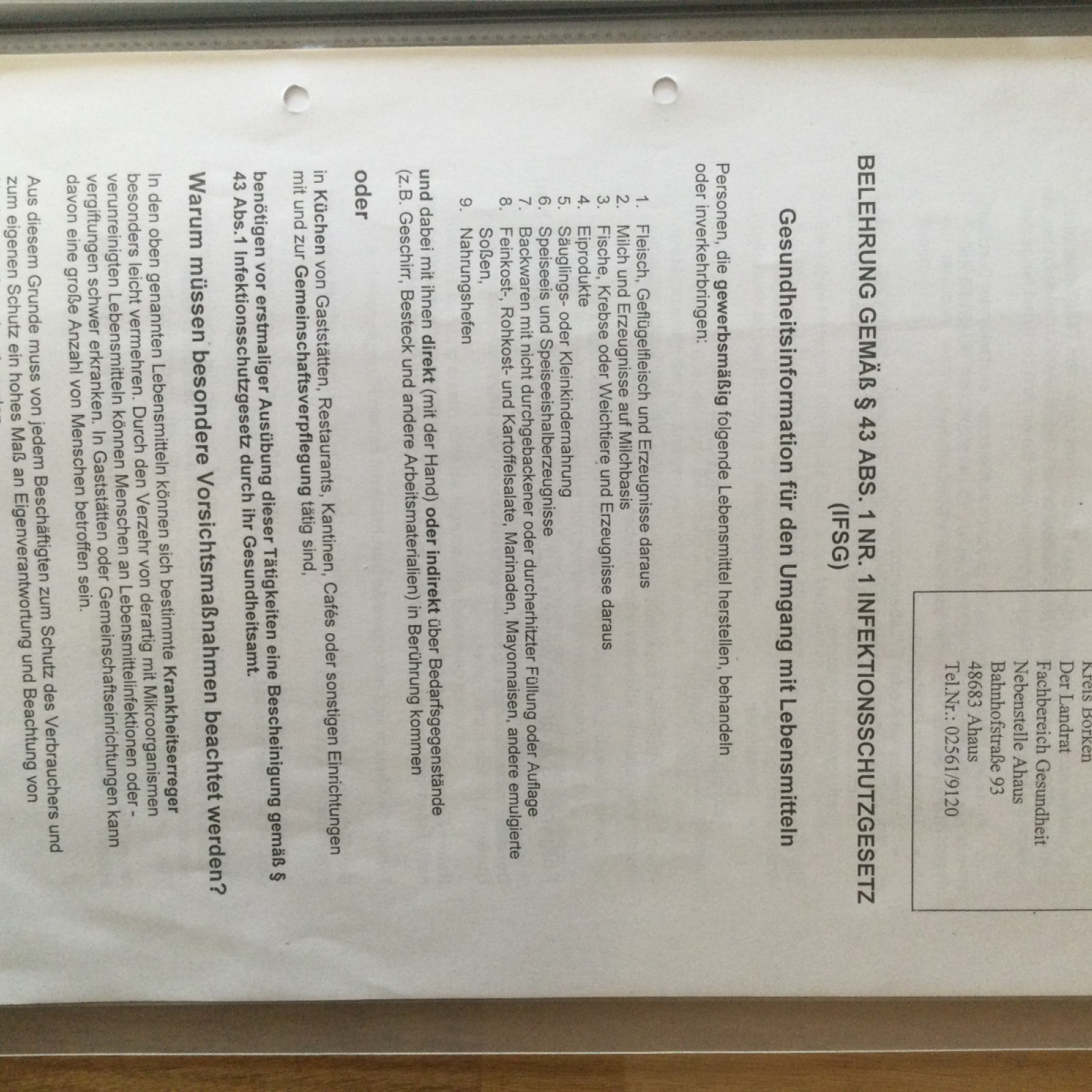 -Belehrung für Infektionsschutz (alle zwei Jahre Auffrischung)